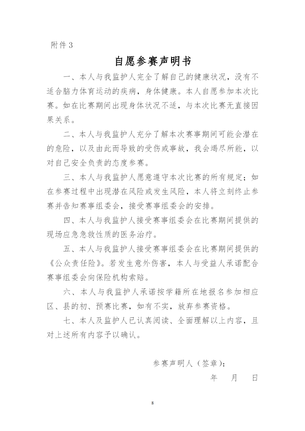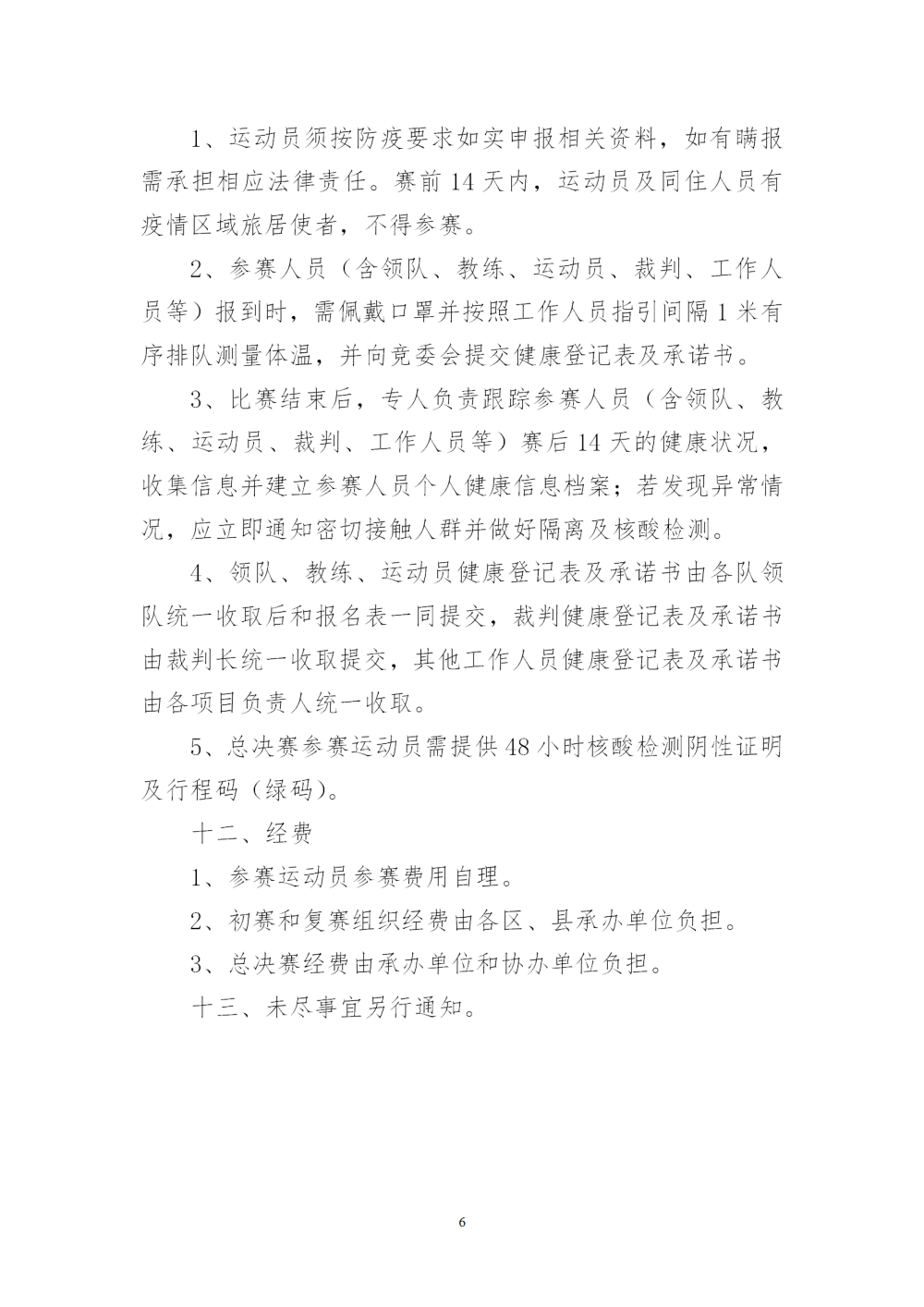 各區、縣各組別初、復賽獲得前八名運動員參加總決賽。