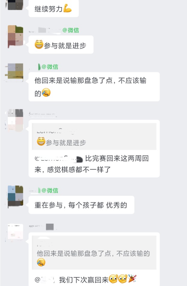 在如此大環境下,比賽不僅考驗孩子,更考驗家長。每場比賽,都凝聚著家長們無比關切的殷殷目光,清源參賽學員的家長群里,更是時時能看到家長和教練員討論孩子的對局、戰術。
