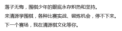 “惠州市中小學生圍棋賽”由惠州市文化廣電旅游體育局、惠州市教育局聯合主辦,清源棋文化·惠州市清源青少年圍棋俱樂部承辦。自2001年起已經連續辦賽22屆,是惠州市權威性最強、持續性最久、規模最大的專業少兒圍棋經典賽事,也是惠州少兒圍棋屆公認毫無爭議的“最強之戰”。